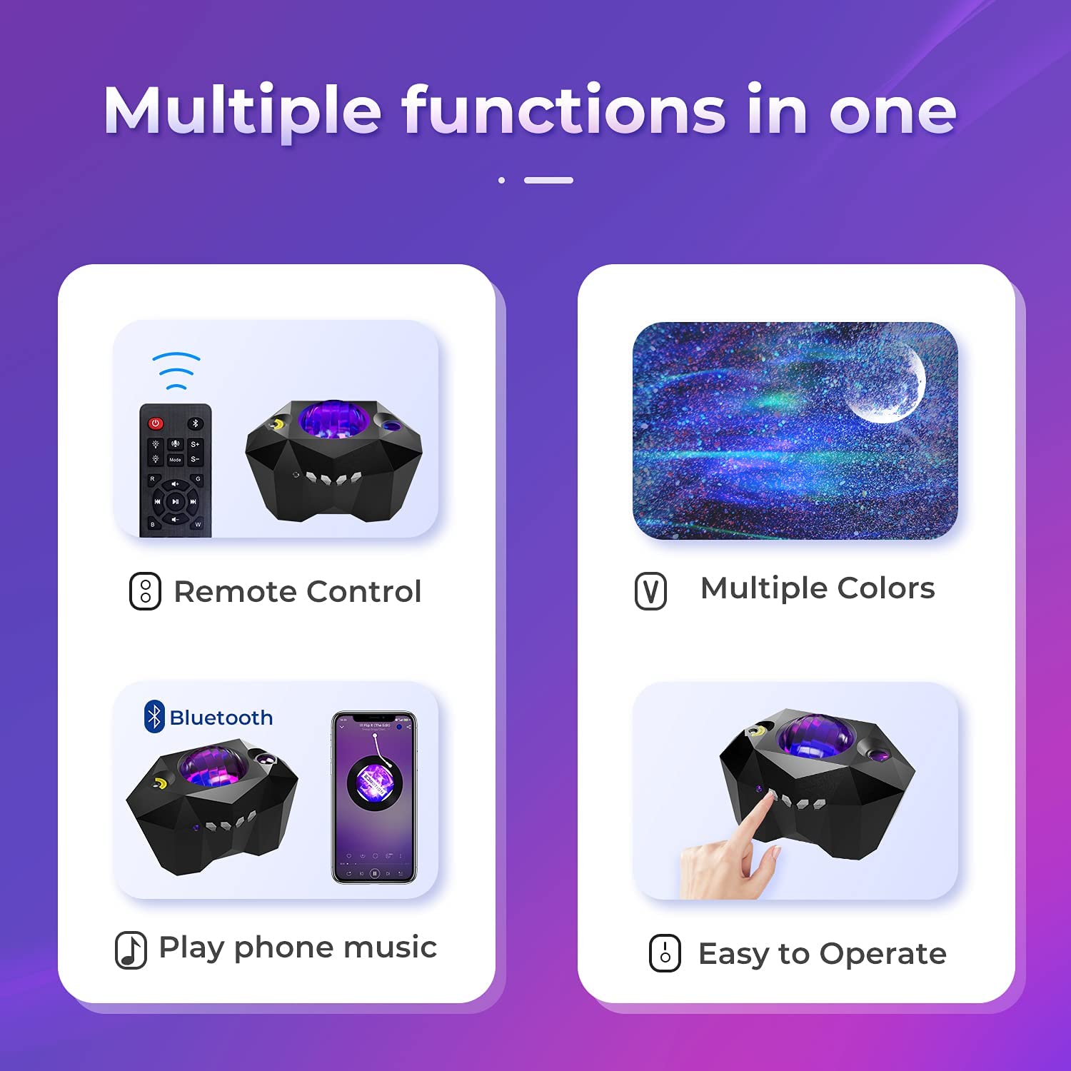 ⪠Built-in Mini Bluetooth Music Speaker and USB slot, choose your favorite music and play through your phone or UDisk. The latest voice control mode (star projection in the music environment) can flash with the rhythm of the music or the clapping, perfect for activating the party ambiance or parent-children interaction, gamer room decor.